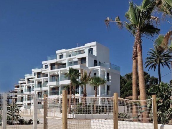 MEDITERRANEAN HOUSING A FEW METERS FROM THE SEA Exclusive complex of Mediterranean construction a few meters from the sea. On the beachfront, in front of L´Estanyo beach (7 km from the town center). Apartments and penthouses with two and three bedrooms, all with sea views. Magnificent common areas with a large garden area and two swimming pools, one for children. In an unbeatable location, in the area known as L´Estanyo that gives its name to its beach, with calm waters, an extensive area of golden sand surrounded by all facilities and services, as well as leisure and restaurant venues.