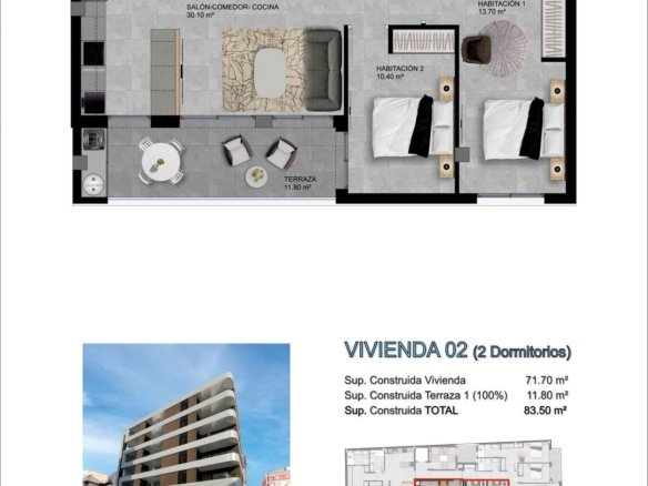 Modern New-Build Apartments in Santa Pola Just 500 Meters from the Beach Prime Location in the Heart of Santa Pola This exclusive new development is located in the vibrant center of Santa Pola, one of the most charming coastal towns in the province of Alicante. Just 500 meters from the beach and the marina, residents can enjoy the Mediterranean lifestyle with everything at their doorstep. Alicante city is only 20 km away, and Alicante-Elche International Airport is just 15 km, providing excellent connectivity. Contemporary Apartments Designed for Comfort The building consists of 15 modern homes with 2 bedrooms and 2 bathrooms, as well as optional units with 1 or 3 bedrooms and optional storage spaces to suit different needs. Every apartment is designed with bright and spacious interiors, featuring open-plan living and dining areas connected to furnished kitchens. Large sliding doors lead to private terraces, perfect for enjoying the mild climate of the Costa Blanca. Spacious Master Suites and Premium Features Master bedrooms measure up to 20 m² and include ensuite bathrooms, with some layouts offering generous walk-in wardrobes. The penthouses boast expansive solariums equipped with barbecue areas, pre-installation for a jacuzzi, outdoor showers, and TV and electricity connections, making them perfect for outdoor entertaining all year round. Enjoy the Mediterranean Lifestyle Santa Pola is renowned for its natural beauty and endless leisure opportunities. The town offers pristine beaches and coves ideal for sunbathing, snorkeling, and water sports. Just 20 minutes away by boat lies Tabarca Island, famous for its crystal-clear waters, marine reserve, and Mediterranean gastronomy. For nature lovers, the Las Salinas de Santa Pola Natural Park provides spectacular hiking trails and unique birdwatching experiences. Perfectly Connected for Your Convenience Thanks to its strategic location, this development offers easy access to essential services, shopping centers, and sports facilities. Golf enthusiasts can reach top courses such as El Plantío Golf in less than 25 km. Alicante city, with its cultural and gastronomic attractions, is only 30 minutes away by car. An Ideal Home or Investment Opportunity Whether you are looking for a permanent residence, a holiday home, or a rental investment, these new-build apartments in Santa Pola combine modern design, comfort, and an unbeatable location. Contact us today to reserve your apartment and start enjoying the best of Santa Pola and the Costa Blanca.