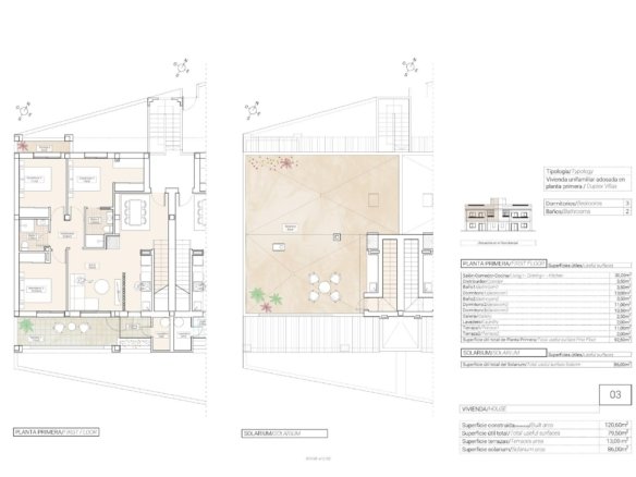 NEW BUILD BUNGALOWS IN HONDON DE LAS NIEVES New Build 4 bungalows located in Hondón de las Nieves (Alicante) All bungalows have 3 bedrooms with fitted wardrobes, 2 bathrooms, large living room, fitted kitchen and terrace. The properties are available on the ground floor with front and rear terrace/garden and on the top floor with terrace and private solarium. The first floor properties have photovoltaic panels on the roof for energy saving. The kitchens are fully furnished and finished with granite or synthetic agglomerate worktops (silestone or simular). The bathrooms are finished with high quality sanitary ware and taps with built-in cistern. These homes have pre-installation for ducted air conditioning with heat pump, forced ventilation with heat recovery, aerothermal system for domestic hot water, the most modern thermal and acoustic insulation, aluminium exterior carpentry with thermal bridge break and shutters. Hondón de las Nieves is a town in the Valencian Community, Spain. It is located in the southwest of the province of Alicante, in the region of Vinalopó Medio. The beaches and Alicante Airport are closely just 30 minutes drive away.