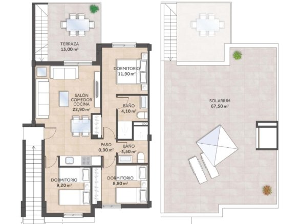 New Build Bungalows in San Miguel de Salinas – Nature, Golf and Comfort Discover this new residential development in San Miguel de Salinas, located in the sought-after area of “La Cañada”, surrounded by a protected pine forest between the prestigious golf courses of Campoamor and Las Colinas. Just 7 km from the Mediterranean coast, this residential offers the perfect blend of tranquility, nature, and easy access to all amenities. Spacious and Modern Homes The development offers two property types to suit different lifestyles: Ground floor bungalows: 2 bedrooms, 2 bathrooms, two large private gardens, and surface parking. Top floor bungalows: 2 bedrooms, 2 bathrooms, spacious solarium with sea views, and surface parking. Each home features generous dimensions and can be adapted into a 3-bedroom layout (optional at an extra cost), with kitchen appliances included. High-Quality Finishes Designed for comfort and functionality, all properties include: Fully equipped bathrooms with furniture, mirrors, and shower screens Aerothermal hot water system Built-in LED ceiling lights Exclusive Community Areas The residential features over 1,700 m2 of landscaped green areas with palm trees and Mediterranean plants. Residents can enjoy a large swimming pool with jacuzzi, a children’s pool, and sunbathing areas, making it the ideal setting to enjoy the Costa Blanca climate all year round. Privileged Location in San Miguel de Salinas This quiet residential is located less than 3 km from the charming town of San Miguel de Salinas, with all daily services at hand. In addition, beautiful sandy beaches in Orihuela Costa and Torrevieja are only 7 km away, offering endless leisure, shopping, and dining options. Close to Renowned Golf Courses For golf enthusiasts, the location is unbeatable. Within a 4 km radius you will find three of the most prestigious golf courses on the Costa Blanca: Villamartín Golf – 3.5 km Las Colinas Golf & Country Club – 4 km Campoamor Golf – 4 km Excellent Connectivity Key points of interest nearby include: San Miguel de Salinas – 3 km La Zenia Boulevard Shopping Centre – 10 km Alicante Airport – 55 km Murcia Airport (Corvera) – 50 km Secure Your New Home in San Miguel de Salinas Whether you are looking for a permanent residence, a holiday retreat, or an investment opportunity, these new build bungalows offer excellent value in one of the most desirable areas of the Costa Blanca. Contact us today for more information and to arrange a visit.