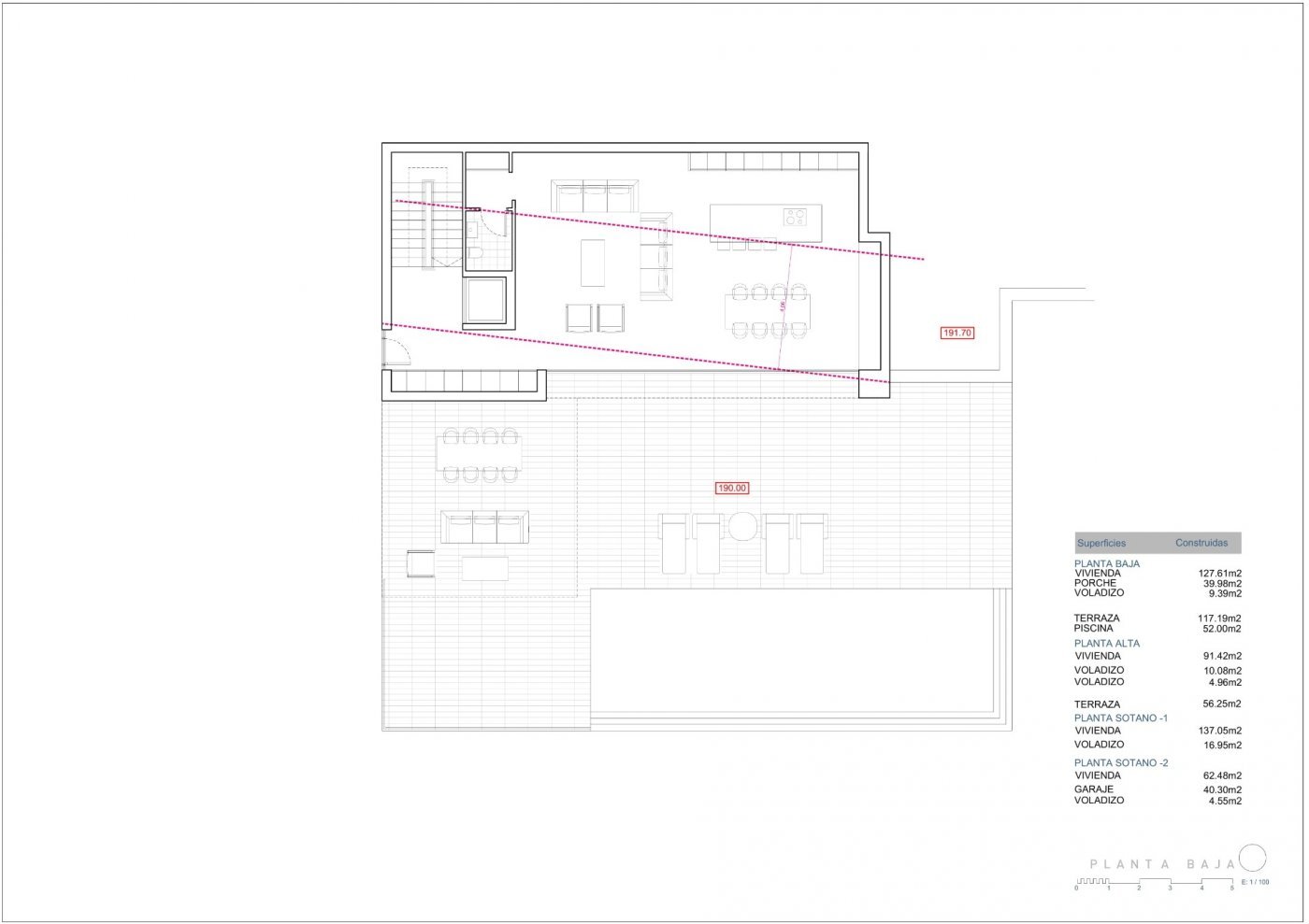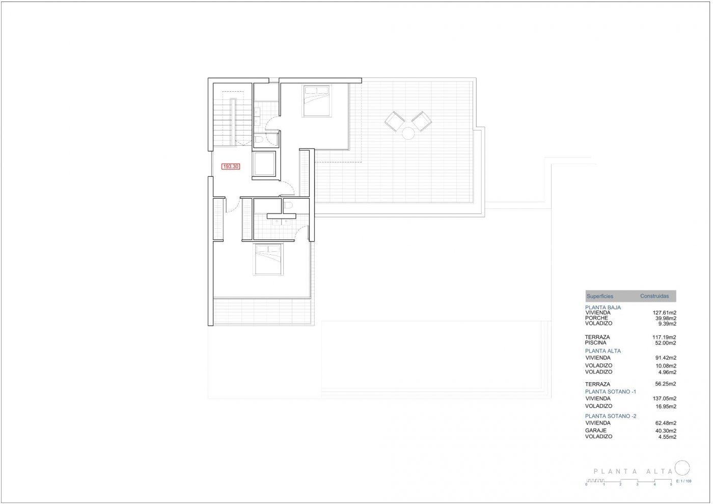 NEW BUILD LUXURY VILLA IN BENISSA New Build Luxury villa in Benissa with VIEWS TO THE SEA and the Peñón de Ifach. This villa, with exposed panelled concrete finishes, has 4 floors that are connected with an elevator and an internal staircase. The ground floor has a large open living-dining-kitchen area and guest toilet. The kitchen is fully equipped and has a cooking island. Sliding doors at ceiling height give direct access to a spacious terrace and pool. The upper floor contains two bedrooms with en-suite bathrooms and a terrace. The property has 2 basements. The basement number 1 has another two bedrooms, each with its own bathroom and a laundry room. The basement number 2 houses the gym, the cellar and a garage with capacity for 4 cars. The house has air conditioning (with ducts) and central heating with heat pump. It has an automatic entrance door with a separate pedestrian entrance and an intercom. On the same level as the main house is the swimming pool. Includes exterior carpentry with automatic shutters and mosquito nets in bedrooms, fitted wardrobes with modules and basic alarm installation. Benissa is located towards the northern end of the Costa Blanca, just off the A-7 Motorway; the trip to and from Alicante airport takes just over one hour. The town is small, but enchanting with its medieval architecture and charming plazas. Although only 5 kilometres distance from the sea – as the crow flies, the nearest beaches by road are approximately 11 kilometres away and the seaside towns of Calpe (to the south) and Moraira (to the north east) are approximately 12 kilometres distance. The views of the Mediterranean, the weather, wild nature, the quality of the light, the towns architecture, Benissa will seduce you. Alicante airport located 1 hour away.