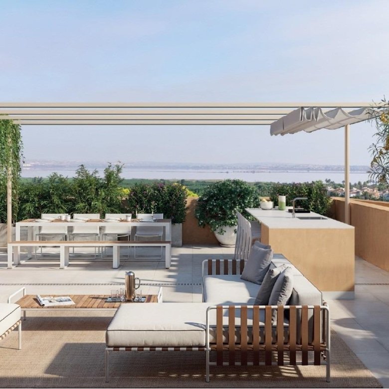 New Build Residential Apartments in Los Balcones, Torrevieja Modern Homes in a Prime Residential Area Discover this attractive new build residential complex located in Los Balcones, one of the most popular and established neighborhoods on the outskirts of Torrevieja. Set in a peaceful environment with excellent access to all essential services, this development is just 4 km from the sandy beaches of the Costa Blanca. Los Balcones is known for its relaxed atmosphere, wide streets, green areas and proximity to hospitals, supermarkets, restaurants and shopping centers, making it ideal for year round living or holiday use. Contemporary Apartments with Private Outdoor Spaces The complex consists of 52 modern apartments built on a total surface of 6700 m2. Each property includes a private parking space and a storage room in the underground. The homes offer 2 or 3 bedrooms and 2 bathrooms, one of them en suite. Buyers can choose between ground floor apartments with a private garden or upper floor homes with a spacious terrace and a private solarium. These layouts are designed to maximize natural light and provide comfortable indoor and outdoor living spaces to enjoy the Mediterranean climate all year round. Communal Areas Designed for Relaxation The project is arranged into four blocks surrounding a large central communal area. This green heart of the development features a swimming pool with a dedicated children area and beautifully landscaped gardens. These shared spaces are perfect for relaxation, socializing and family time in a safe and friendly environment. Quality Features and Energy Efficient Design Each apartment is built to modern standards and includes pre installation of ducted air conditioning, an aerothermal hot water system for improved energy efficiency, exterior lighting and double glazed exterior carpentry. The kitchens come fully furnished, offering a functional and stylish space for daily living. These features ensure a high level of comfort, low maintenance and reduced energy consumption, making the homes both practical and sustainable. Excellent Location Near Beaches and Golf Los Balcones offers a strategic location close to many points of interest. The beaches of Torrevieja are approximately 4 km away. Several renowned golf courses such as Villamartin Golf, Las Ramblas Golf and Campoamor Golf are within 10 to 15 km. The University Hospital of Torrevieja is less than 2 km away, adding convenience and peace of mind. Torrevieja town center is around 5 km away, connected by bus with Los Balcones, where you will find a wide range of shops, restaurants, cultural venues and a lively marina. Alicante International Airport is located about 42 km away, providing easy international connections. The port of Torrevieja is approximately 6 km away. Ideal for Living or Investment With its modern design, excellent communal areas and prime location near beaches, golf and services, this new residential complex in Los Balcones Torrevieja is perfect as a permanent residence, holiday home or investment opportunity. Contact us today for more information or to arrange a viewing of these new build apartments in Los Balcones, Torrevieja.