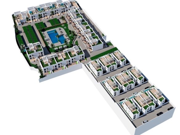 RESIDENTIAL COMPLEX OF NEW CONSTRUCTION IN FINESTRAT New construction residential complex in Finestrat located in one of the best areas to live on the Costa Blanca. The new construction complex consists of 60 bungalows with 2 or 3 bedrooms and 2 bathrooms with access to the common areas and the pool. Some units also have a private pool. All bungalows have a parking space. Some units have magnificent views of the sea and the Benidorm skyline. Finestrat is located in the Marina Baixa region of the Costa Blanca, close to neighboring Benidorm and about 40 kilometers from the city of Alicante and the international airport. Benidorm is only a five minute drive from the properties and offers all the services you may need, including shops, bars, restaurants, supermarkets, banks, pharmacies and several international private schools. Near the beaches of Levante, Poniente and Cala de Finestrat, with more than 6 km in length that are among the best in Europe awarded by the European Union with Blue Flags. All the leisure services such as the Aqua Natura, Terra Mítica, Terra Natura, Aqualandia and Mundomar theme parks, the Sierra Cortina and Villaitana golf courses, hiking and climbing in Puig Campana an incomparable natural setting or the enjoyment of water sports.
