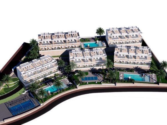 NEW BUILD RESIDENTIAL COMPLEX IN FINESTRAT New Build residential complex in Balcon de Finestrat. This complex of modern apartments with 2 bedrooms, 2 bathrooms, open plan kitchen with the living area. Some of the apartments will have sea views. Ground floor apartment with a private gardens, middle floor apartments with the terraces and top floor apartments has a terraces and private solariums. Each property has private underground parking space. The properties have access to the communal area with 3 swimming pools, parking, paddle, playground, calisthenics. It is a great opportunity and privilege to be able to live with this environment of golf and beach, close to all amenities of all services considered one of the best places to invest. Finestrat located in the Marina Baixa region of the Costa Blanca. Benidorm is just a five-minute drive from the properties and offers all the services you would need including shops, bars, restaurants, supermarkets, banks, pharmacies and several private international schools. Close to the beaches of Levante, Poniente and Cala de Finestrat, with more than 6km in length that are among the best in Europe awarded by the European Union with Blue Flags. All leisure services such as the theme parks of Aqua Natura, Terra Mítica, Terra Natura, Aqualandia and Mundomar, Sierra Cortina and Villaitana Golf courses, hiking and climbing in Puig Campana an incomparable natural setting or enjoy of nautical sports. Distance to the sea 4 km, to the airport 26 km and to the golf 1km.