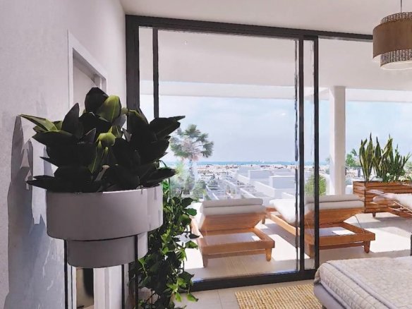NEW BUILD RESIDENTIAL COMPLEX IN MAR DE CRISTAL New Build modern residential complex of apartments and penthouses located very close to the promenade and the long lovely sandy beaches of Mar de Cristal. You can choose from ground floor apartments with a private garden, mid-floor apartments with a terrace, and penthouses with private solarium. Properties has 2 or 3 bedrooms and 2 bathrooms. The apartments have a modern design, presenting an open plan living area, combining the kitchen, dining area and lounge, into a large space with access to the terrace. The master bedroom has a private bathroom. Built with top quality finishes, fitted wardrobes, pre-installation of ducted A/C, a storage room, and a underground parking space. All the daily necessities, like supermarkets, bars and restaurants, are available all year ‘round and are located close to the complex. Mar de Cristal has beautiful sandy beaches, a tennis centre, marina, supermarkets, bars and restaurants. The Calblanque national park where you will find unspoilt long white sandy beaches, as well as the famous La Manga Club and the bustling town of Los Belones are all within a 5 min drive from the village. Murcia airport is 25 mins and Alicante 1 hour drive. You can also visit the historic cities of Cartagena and Murcia.