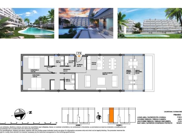 NEW BUILD RESIDENTIAL COMPLEX IN MAR DE CRISTAL New Build modern residential complex of apartments and penthouses located very close to the promenade and the long lovely sandy beaches of Mar de Cristal. You can choose from ground floor apartments with a private garden, mid-floor apartments with a terrace, and penthouses with private solarium. Properties has 2 or 3 bedrooms and 2 bathrooms. The apartments have a modern design, presenting an open plan living area, combining the kitchen, dining area and lounge, into a large space with access to the terrace. The master bedroom has a private bathroom. Built with top quality finishes, fitted wardrobes, pre-installation of ducted A/C, a storage room, and a underground parking space. All the daily necessities, like supermarkets, bars and restaurants, are available all year ‘round and are located close to the complex. Mar de Cristal has beautiful sandy beaches, a tennis centre, marina, supermarkets, bars and restaurants. The Calblanque national park where you will find unspoilt long white sandy beaches, as well as the famous La Manga Club and the bustling town of Los Belones are all within a 5 min drive from the village. Murcia airport is 25 mins and Alicante 1 hour drive. You can also visit the historic cities of Cartagena and Murcia.