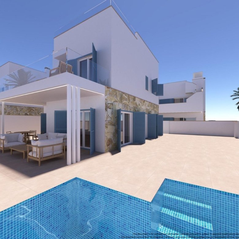 NEW BUILD RESIDENTIAL COMPLEX IN TORRE DE LA HORADADA New Build residential complex of bungalow apartments with communal pool in Torre de la Horadada located 800m from the beach. All properties has 2-3 bedrooms, 2 bathrooms, open plan kitchen with the lounge area, fitted wardrobes and terrace. All properties has private gardens and parking space. Plus bungalows on the top floor has private solarium. Torre de la Horadada is located south of Alicante in a beautiful location on the coast. The beautiful beaches of Torre de la Horadada and Mil Palmeras have fine sand beautiful promenade. There are lots of restaurants, bars and shops, also water sports, diving and snorkelling. It is well connected just 40 minutes from Alicante and Murcias Corvera airports, with large commercial shopping centres and multiple golf courses all within easy reach.