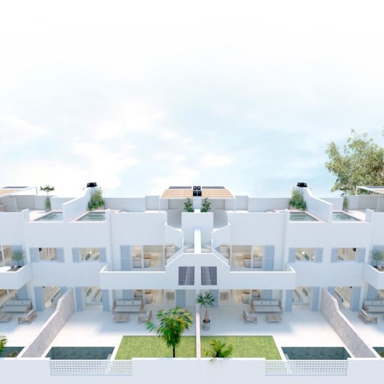NEW BUILD RESIDENTIAL IN EL RASO, GUARDAMAR DEL SEGURA New Build residential complex of modern style apartment in El Raso, Guardamar del Segura! This apartments have 3 bedrooms, 2 bathrooms, open plan salon with kitchen, ground floor with private garden, middle floor with terrace and top floor with private solarium. Complex with swimming pool, green areas, golf greens, Spa, playground, bio-healthy machines and sports areas. Complex located in green area close to the salt lake, all amenities, walking distance to commercial centre, bars and restaurants. El Raso is a part of Guardamar del Segura. Guardamar del Segura is a town located on the Costa Blanca South. With its 11 kilometres of natural beach and its large pine forest. Guardamar del Segura has a large port with activities throughout the year, it has a large sports centre with paddle tennis, tennis, soccer and a large heated swimming pool that works all year round. It also has a library where there is free wifi and computers. Guardamar del Segura is only 20km away from the Alicante – Elche (El Altet) airport, where there are many flights every day with connections to the main European cities, due to the demand for tourists on the Costa Blanca.