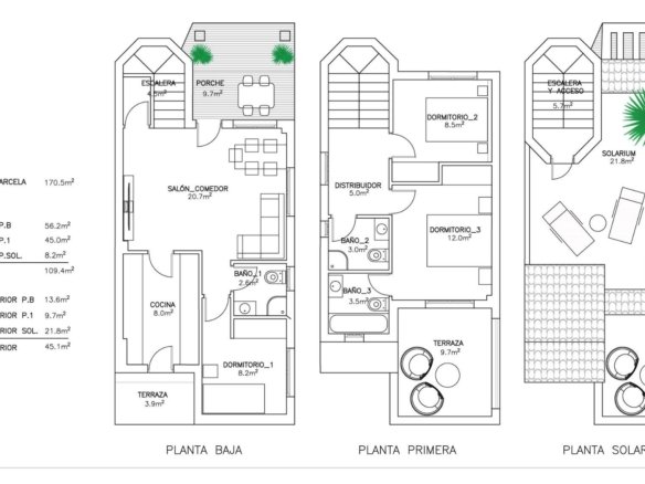 NEW BUILD RESIDENTIAL IN SAN FULGENCIO Residential complex of independent and semi-detached villas in San Fulgencio. The houses consist of 2-3 bedrooms, 3 bathrooms, living room and separate kitchen, 2 terraces on the ground floor, one terrace on the 2nd floor and a solarium on the roof. Each property has private garden and parking space. There is a large communal swimming pool. San Fulgencio is a comfortable and convenient area, known for its excellent infrastructure. In the immediate vicinity of cafes, restaurants, bars, pharmacies, 3 large supermarkets: Lidl, Aldi, Mercadona. Residential complex is located 10 minutes by car from the beach and also 10 minutes from the most famous in this area leisure and family center ¨La Marina Resort¨ with a water park, camping, gym, spa, restaurants, shops and cafes. Residential complex has a unique location – 30 minutes by car from the airport, 40 minutes from the city of Alicante and 20 minutes from the city of Torrevieja.