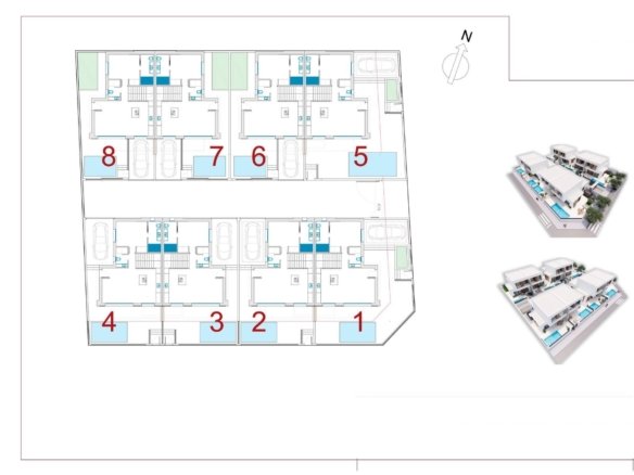 New Build Semi detached villas in Dolores This modern residential development in Dolores features newly built semi detached villas. Designed with contemporary style and comfort in mind, each home is spread over two floors, offering 3 bedrooms and 3 bathrooms. The open-plan kitchen seamlessly connects with the living room, which leads directly to a private terrace and garden. Every home also comes with its own private pool and parking space. High-Quality Finishes and Modern Amenities These homes are constructed using high-quality materials and finishes. Exterior carpentry is made of aluminum with thermal break, and the bathrooms feature glass shower enclosures. LED lighting is installed throughout the property, ensuring energy efficiency and a modern ambiance. These features combine to create a comfortable, stylish living environment for you and your family. Prime Location Near Daily Services Located on the outskirts of the charming town of Dolores, these homes are just a short walk from essential day-to-day services, including shops, restaurants, and local amenities. Dolores is part of the Vega Baja del Segura region, in the southern part of Alicante province, known for its agricultural landscapes and relaxed pace of life. Close to Key Points of Interest La Marina Beach: 10 km Guardamar Beach: 10 km Alicante Airport: 30 km Murcia-Corvera Airport: 60 km Golf Courses: 15 km Shopping Centers: 12 km Perfect for Enjoying the Costa Blanca Lifestyle With the Mediterranean climate, beautiful beaches just a short drive away, and several golf courses nearby, this development offers the ideal balance of relaxation and leisure. Whether you’re looking for a holiday home or a permanent residence, these new build homes in Dolores provide modern living in a serene, well-connected location.