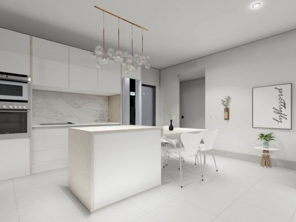 NEW BUILD SEMI-DETACHED VILLAS IN ROLDAN New Build luxury complex of one or two levels semi-detached villas in Roldan. You have an option of semi-datached villas with 2 bedrooms, 2 bathrooms build over one floor with solarium or with 3 bedrooms, 3 bathrooms build over two floors with lalrge terrace. On the top floor, on the terrace or solarium you will have a summer kitchen that allows you to enjoy all hours of sunshine, every day of the year. All villas has private garden with with pool and parking space. Designed with a contemporary style and open planned concept, comprising a fully-fitted kitchen and lounge-dining room. The development is located in Roldán (Murcia), within a gated and security control resort. Is near the beach, surrounded by services, parks, sports facilities and several Golf Courses. The property will meet the highest standards and will be equipped with: Private swimming pool preinstalled for heating system and with solar shower. Kitchen completely furnished and equipped with oven, microwave, fridge, integrated dishwasher and extractor fan. Also, central wooden island. Lighting: LED inside the property as well as in outdoor areas. Lined wardrobes with drawers. Fully fitted bathrooms with suspended toilet, shower screens, vanity unit, mirror with light and rainfall shower. Summer kitchen in solarium. Pre-installation for ducted air conditioning. Parking space on the plot. Roldan itself is a traditional town with all the local amenities you will need including Supermarkets, Restaurants, Bars, Health Clinic, Pharmacy, Police Station, Petrol Station, Mechanics, Dentists, Doctors and more. The nearby golf resorts of La Torre, & Terrazas are easily accessible, Corvera Airport is 15 minutes away & the beaches of the Mar Menor just 20 minutes drive.