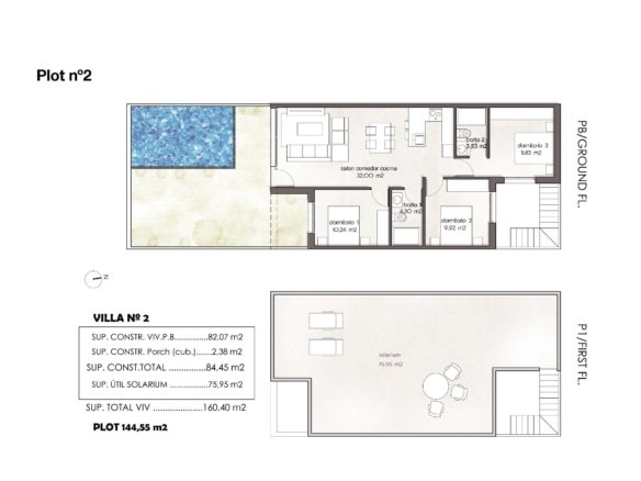 NEW BUILD TOWNHOUSES IN PILAR DE LA HORADADA New Build townhouses located in Pilar de la Horadada. Townhouses build on 1 floor and has private solarium, 3 bedrooms, 2 bathrooms, open plan kitchen with the living room, garden with parking space. An options for a private pool at an extra cost. Properties located a few meters from all services and the centre. Pilar de la Horadada is a typical Spanish village in the most southern part of the Costa Blanca. The large main street has supermarkets, lots of shops, restaurants and bars and some lovely squares. The beautiful beaches of Torre de la Horadada and Mil Palmeras with fine sand promenade is just 5 minutes away. In Pilar de la Horadada there is also a well-developed cycling and walking path network, and there is also a large offer of various sports activities. Lo Romero 18 hole golf course is just a short drive from town. The airports of Corvera (Murcia) and Alicante are respectively 40 and 55 minutes away.