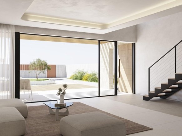 NEW BUILD VILLAS IN FINESTRAT New Build Modern villas in Finestrat. Villas with3 bedrooms and 3 bathrooms, open plan kitchen with lounge area, terrace with magnificent views over Benidorm, private garden with swimming pool and parking space. It is conceived as a fully walkable space with interior and exterior pathways that provide independent access to each floor. This design offers various perspectives of the architectural complex and its surroundings, with the sea and Sierra Cortina serving as a picturesque backdrop. The main entrance to the villa is located at the lower part of the plot, featuring ample parking for two vehicles. A water feature with lounge chairs introduces you to the ground floor, characterized by wide walls adorned with masonry. Extending seamlessly from the living room is a terrace, made possible by a large folding window. Wooden shutters on masonry walls provide a partially covered outdoor area for added comfort. The pool, with its aquamarine hues and gresite lining, sits adjacent to a pavement area crafted from non-slip porcelain tile with a wood-like appearance. This space also includes a barbecue area that can be customized to suit the user’s needs, with access from a paved zone through the natural terrain. Finestrat located in the Marina Baixa region of the Costa Blanca, close to neighbouring Benidorm and about 40 kilometres from the city of Alicante and the international airport. The village is situated on the mountainside of Puig Campana and offers beautiful views of the mountains, the coast and the Mediterranean Sea. Benidorm is just a five-minute drive from the properties and offers all the services you would need including shops, bars, restaurants, supermarkets, banks, pharmacies and several private international schools.
