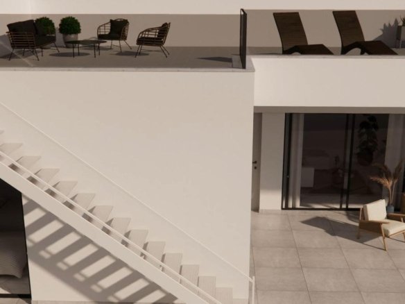NEW BUILD VILLAS IN LOS MONTESINOS New Build boutique project of 7 one level villas in Los Montesinos, La Herrada. Villas has 3 bedrooms, 3 bathrooms, open plan kitchen with lounge, fitted wardrobes, terrace, private garden with off road parking. An options for a solarium and a private pool at an extra cost. Detached Villas located walking distance to all the facilities of Los Montesinos Village-La Herrada. Ideal location to enjoy the tranquillity with all the services, restaurants, pharmacies, etc … just 2 minutes walk. Surrounded by several Golf Courses of Great Prestige and very close to the beaches of Guardamar and Torrevieja. The nearby nature reserves and their lakes are perfect for bird watching, walking, cycling and horse riding. Los Montesinos are located between the salt lakes of Torrevieja and La Mata, creating a unique and healthy lifestyle. Distance to the sea 8km, to the Golf 5 km and to Alicante Airport 29 km.