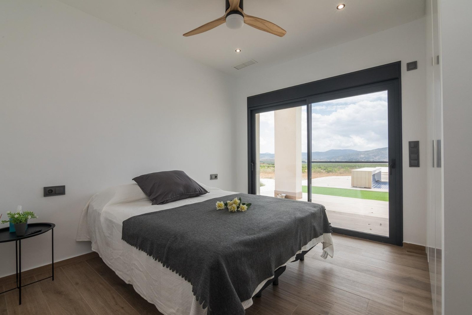 NEW BUILD VILLAS IN PINOSO New Build Independent modern villas that can be built on rustic or urban plots of land we have a wide range available in the area of Pinoso: •3 bedrooms, 2 bathrooms • Private swimming pool • Full installation of air conditioning • Full equipped kitchen • Big choice of quality materials • Mains electricity and water • 4 solar panels included • AA Energy Label • Plots from 10.000 m2 in various locations to choose from. • 3.000 m² fenced plot for easy maintenance • Motorised sliding gate On the rustic plots, about 3.000 m2 of the total plot will be fenced and the houses will be delivered with about 1.000 m2 of gravel around the house. The house has a private swimming pool and photovoltaic solar panels for the electricity supply. There are several rustic plots to choose from in different locations, each with a different price (in the prices published in this advert a plot with a value of 40.000 eur has been considered, if the buyer chooses another plot, the final price will be recalculated accordingly). The delivery period is 8 months from the granting of the building licence. It is acquired under a self-promotion regime: the buyer makes payments on account of the price as the builder executes the work.