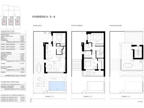 NEW BUILD VILLAS IN SAN PEDRO DEL PINATAR New Built modern villas located near the centre of San Pedro del Pinatar. Villas build over 2 floors, has 3 bedrooms, 3 bathrooms, open plan kitchen with the lounge area, fitted wardrobes, private garden with the pool and off road parking space, private solarium. From the living room you have direct access to the terrace and the pool. Villas comes with pre-installed ducted A/C, LED lighting package, motorized blinds, appliance package, intercom, aerothermic hot water system and private pool. Nearby you will find supermarkets, restaurants, shops and pharmacies. Within a short drive you can reach several golf courses or the shopping centre Dos Mares. The beautiful beach of Lo Pagan is a few minutes away. San Pedro del Pinatar’s privileged location on the Mar Menor and Mediterranean coastline it attracts those with an interest in sailing and water sports, providing marina mooring and sailing clubs, while the beaches and natural mud baths attract those seeking safe sun, sea and sand. San Pedro del Pinatar has an established community and offers an excellent range of activities, including covered swimming pool and sports facilities, as well as a year round programme of social activities by the pleasant winter weather. The benefits of the mud baths, typical of the region, or the calm waters of the Mar Menor, have favoured the growth of Lo Pagán, wich currently has all kind of amenities. In addition, it has an excellent location, just 5 minutes from the Comercial Center Dos Mares