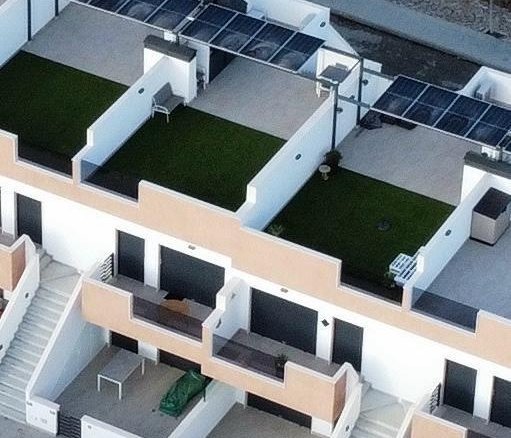 Newly Built Bungalows with Solarium or Garden in Pilar de la Horadada Modern Residential Development on the Southern Costa Blanca Located in the charming municipality of Pilar de la Horadada, this new residential development of bungalows offers a comfortable, Mediterranean lifestyle in one of the most attractive areas of the Costa Blanca. Pilar de la Horadada is known for its welcoming atmosphere, excellent climate and extensive sandy beaches such as Las Higuericas and Mil Palmeras, ideal for enjoying with the family or practising water sports. Layout and Types of Properties The complex consists of 28 modern bungalows available in 2 and 3 bedroom versions, distributed as follows: Ground floors with private garden Upper floors with private solarium and assigned storage room Many of the properties are south-facing, ensuring excellent natural light, and offer views of the communal pool or the adjacent park. Functional and well-equipped spaces Each property has been designed with spacious and functional spaces: Open-plan kitchen with large living-dining room Built-in wardrobes Private terrace in each unit Parking space included In addition, the properties feature: Hot water via aerothermal system Pre-installation of air conditioning PVC exterior carpentry with double glazing and aluminium shutters Bathroom furniture included Communal Areas and Natural Environment The residential complex includes a communal swimming pool surrounded by green areas, perfect for enjoying the sun and tranquillity. Just 4 km from Las Higuericas Beach, it can be easily reached on foot or by bike along the pleasant promenade that connects to the sea. Excellent location and connectivity The location of the residential complex allows access to all kinds of services and points of interest: Supermarkets, shops, bars and restaurants less than 1 km away Golf courses such as Lo Romero 6 km away Dos Mares shopping centre 11 km away Mil Palmeras and Torre de la Horadada beaches just 5 minutes away Murcia (Corvera) airport 40 km away Alicante Airport 65 km away Your New Life in the Sun This residential development in Pilar de la Horadada represents an excellent opportunity to enjoy Mediterranean living in a modern and well-located property. Contact us today for more information or to arrange a viewing and take the first step towards your new home on the Costa Blanca.