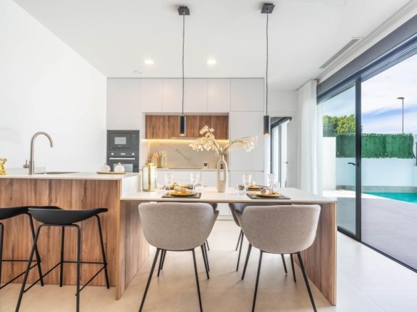 Newly built detached villas with private pool in Roldán, Torre-Pacheco Modern two-storey villas with exclusive design These newly built 3-bedroom, 3-bathroom villas in Roldán, Torre-Pacheco, offer a contemporary and eco-friendly design, designed for comfort and the Mediterranean lifestyle. Built on two floors, each property has a spacious open-plan living/dining room with a modern, fully equipped kitchen, which opens seamlessly onto large terraces. The villas are carefully designed to combine functionality and aesthetics, elegant finishes and plenty of outdoor space to enjoy the Mediterranean sun all year round. Private outdoor space and top-quality features Each villa has: Private pool with beach access and outdoor shower First floor terrace and landscaped areas on the ground floor Private entrance to off-street parking LED lighting package for interior and exterior Pre-installation for air conditioning The 3 bedrooms have en-suite bathrooms, all designed with a contemporary touch and high-quality finishes. Ideal location close to beaches and golf Roldán is a charming Spanish village in the municipality of Torre-Pacheco, known for its traditional atmosphere and comprehensive range of daily amenities, including supermarkets, restaurants, health centres and schools. The location offers proximity to several places of interest: Corvera Airport (RMU) – 15 km Mar Menor and Mediterranean beaches – 20 km Golf courses (La Torre Golf and Las Terrazas de La Torre): less than 4 km Cartagena town centre: 32 km Zenia Boulevard shopping centre: 35 km Los Alcázares marina: 22 km Whether you are looking for a holiday home, a permanent residence or a sound investment to let, this location offers easy access to the attractions of the coast, sports facilities and city amenities. Your new life in the sun awaits Don’t miss out on the opportunity to purchase one of these elegant new villas in Roldán. Contact us today for more information, to arrange a viewing or to secure your new home on the Costa Cálida before they sell out.
