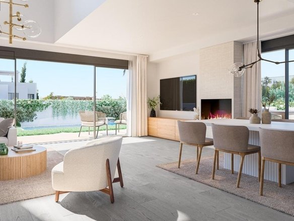 Newly Built Semi-Detached and Terraced Houses in Cabo de las Huertas, Alicante High-end homes in the best residential area of Alicante This exclusive residential complex in Cabo de las Huertas, Alicante, offers 14 semi-detached and terraced houses with 4 and 5 bedrooms, in one of the most sought-after areas of the city, between Albufereta Beach and San Juan Beach. Just 300 metres from the sea, surrounded by natural coves, amenities, schools and shopping areas, this project combines tranquillity, comfort and excellent connectivity with the centre of Alicante. Modern Design with Functional Spaces Each home is distributed over a basement, some units with a cellar, ground floor, first floor and solarium, offering spaciousness, privacy and multiple environments for everyday living. In addition, all homes have a private garden and the option of an individual swimming pool. The communal areas include a communal swimming pool and landscaped areas, ideal for enjoying the Mediterranean climate in a quiet and family-friendly environment. High-Quality Finishes and Energy Comfort The homes have been designed with top-quality materials and systems that guarantee energy efficiency and comfort throughout the year: Individual aerothermal energy for domestic hot water Ducted air conditioning and underfloor heating throughout the home, except in the basement Security entrance door and thermal break carpentry, double glazing and motorised blinds Modern bathrooms with shower trays, screens, furniture and large mirrors All terraces with lighting and power sockets; on the ground floor and separate solarium they will have water supply. Key distances: Nearest beach: 0.3 km Alicante city centre: 6 km Gran Vía shopping centre: 4 km Alicante Golf course: 3 km Alicante Marina: 6.5 km Alicante-Elche Airport: 23 km TRAM and bus stop: less than 500 m A Complete Mediterranean Lifestyle Cabo de las Huertas is synonymous with exclusivity, nature and quality services. This residential complex is perfect for those who want to live near the sea without giving up the advantages of a modern city. The surrounding area boasts prestigious schools, universities, shopping centres, cultural and sports facilities, as well as easy access to motorways, high-speed trains and the international airport. Don’t miss the opportunity to live in one of the most privileged locations in Alicante. Contact us today to schedule a visit and discover your new home in Cabo de las Huertas.