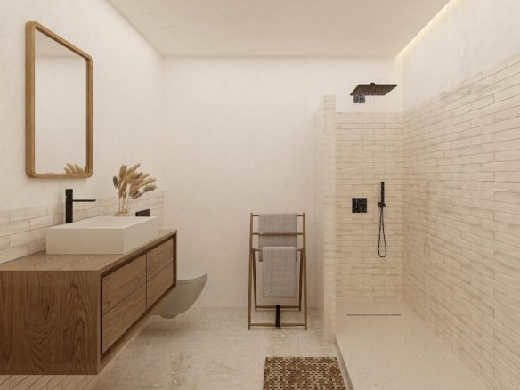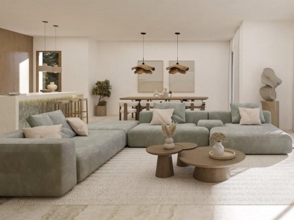 Sea view villa with Ibizan charm in La Fustera, Benissa This stunning newly built villa combines the elegance of contemporary architecture with the warmth and character of Ibizan design. Located in the sought-after area of La Fustera (Benissa Costa), it enjoys panoramic sea views and is just minutes from the beach, supermarkets, restaurants and other essential services. Set on a plot of over 1,000 m², the property is distributed over two levels and offers a total of 4 spacious bedrooms and 3 bathrooms. The ground floor features an open-plan layout with a large living room, dining area and fully equipped kitchen with island and breakfast bar. Floor-to-ceiling sliding doors connect the interior with a generous south-facing terrace, creating a perfect indoor-outdoor flow. This level also includes a bedroom and a bathroom. Outside, the villa boasts several relaxation and dining areas, a pergola-covered BBQ space, and an inviting swimming pool surrounded by lush landscaping and sun loungers. On the upper floor, there are three additional bedrooms (including the master suite with en-suite bathroom and private terrace), as well as a second terrace with beautiful views. The home is fully equipped for year-round comfort and includes underfloor heating, ducted air conditioning, and high-quality finishes throughout. Additional features include a technical room for the heating system and a separate room for pool equipment, both located underground to maximize space and functionality. Secure your dream villa in La Fustera, Benissa Costa, and embrace the ultimate Mediterranean lifestyle with breathtaking sea views and unmatched comfort.